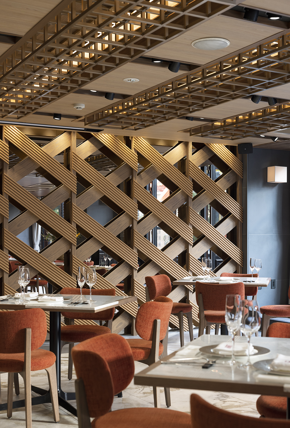一方ダイニング内部は、日常使いはもちろん、プロポーズや記念日、または結婚式といった「人生のハイライト」を演出するためにも、照明計画とマテリアルを精査しています。より艶やかに、より感動的に。10年という時の成熟を空間に込め、訪れるすべての方の「特別な時間」を祝福すること。それが私たちの変わらぬコンセプトです。